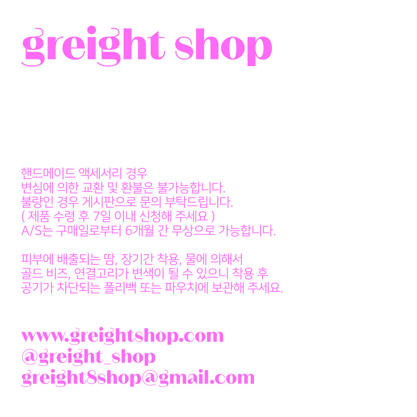 핸드메이드 악세사리 경우 주문 후 제작되는 상품으로 변심에 의한 교환 및 환불은 불가능합니다.